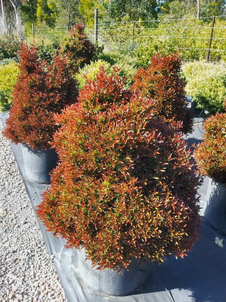 The beautiful burgundy new growth of this outstanding cultivar of Acmena smithii is its outstanding feature. It also has a nice compact growth habit as well which makes it ideal for slightly taller hedges than ‘Allyn Magic’.