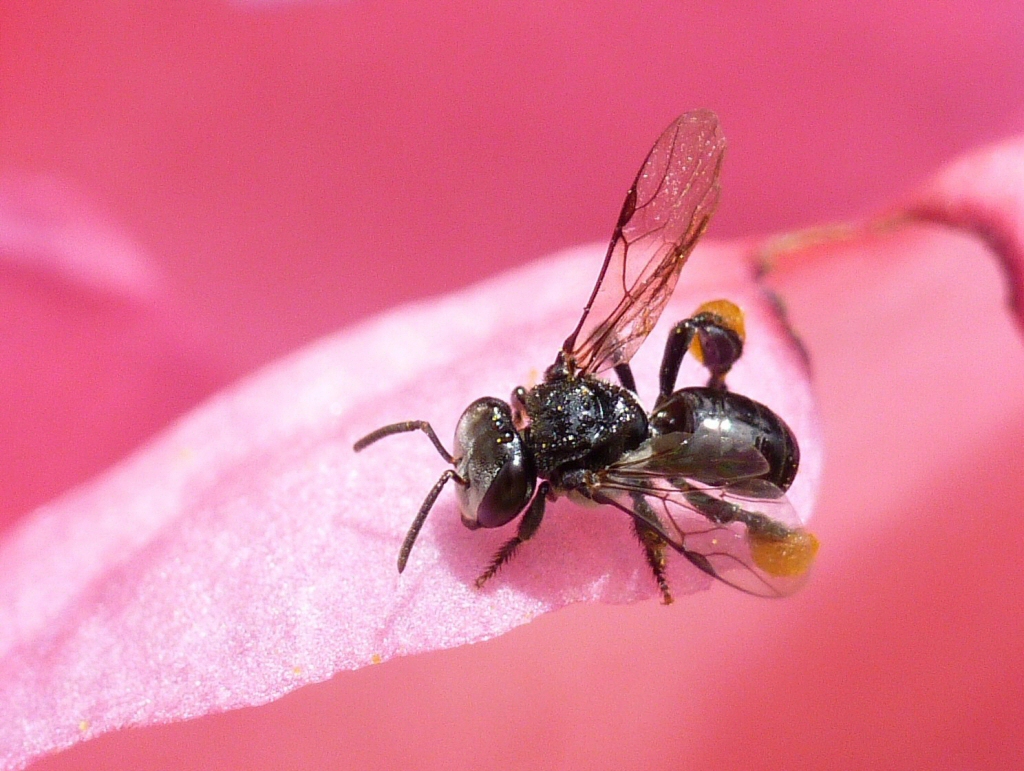 A fun fact for your next party, is that there are over 1,600 different species of our little Aussie bees, and some think possibly closer to 2,000 species! From the world’s smallest bee, Euryglossina (Quasihesma) spp. measuring a tiny 2 mm to the big fat Amegilla dawsoni at 24mm, and in a beautiful array of colours and textures such as the electric blue Neon cuckoo bee below, it’s worth growing some nectar rich plants to attract them to your garden.