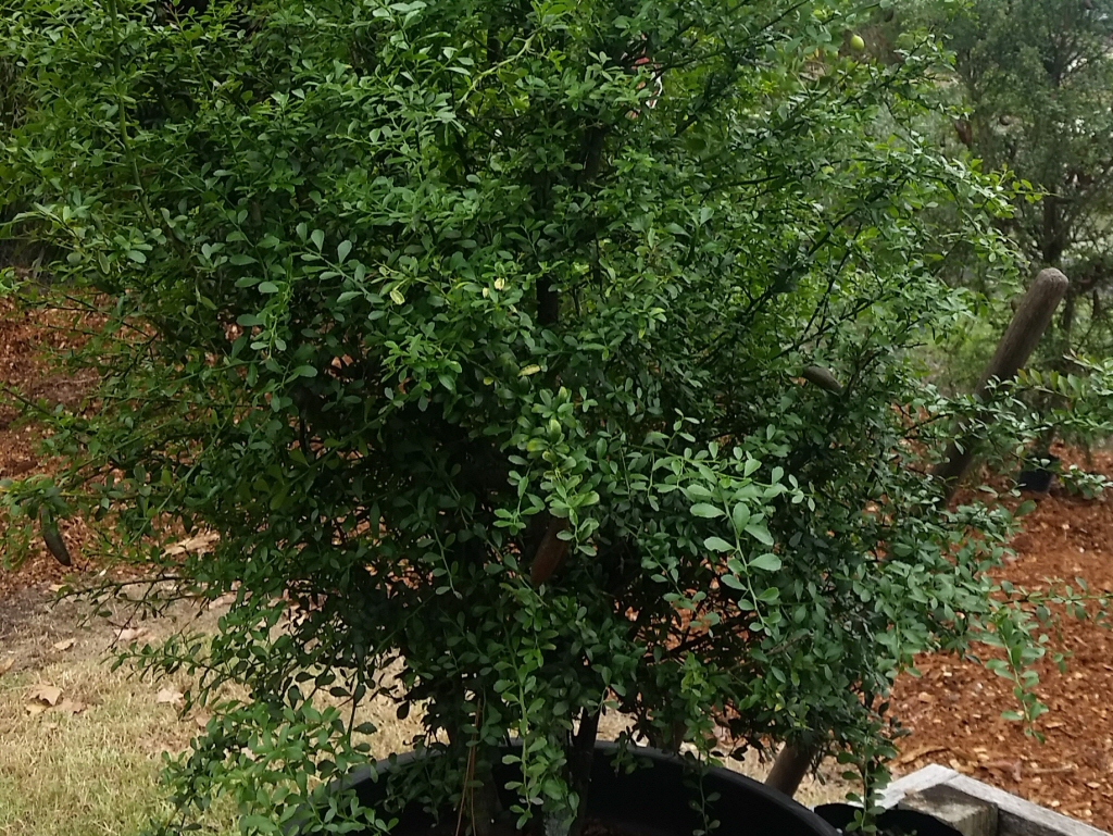This is a larger growing plant, but it is very suitable for growing in a large container provided you use a good potting mix and give it regular feeding and watering. It bears small fruit that have lovely citrus ‘pearls’ inside, which are great in cooking and look and taste sensational for garnishes. It is a very spiky plant, which again suits pot culture where there is less need for weeding. The spikiness can be used for great effect where you want to keep people or animals away from certain areas. It responds well to pruning to size.
