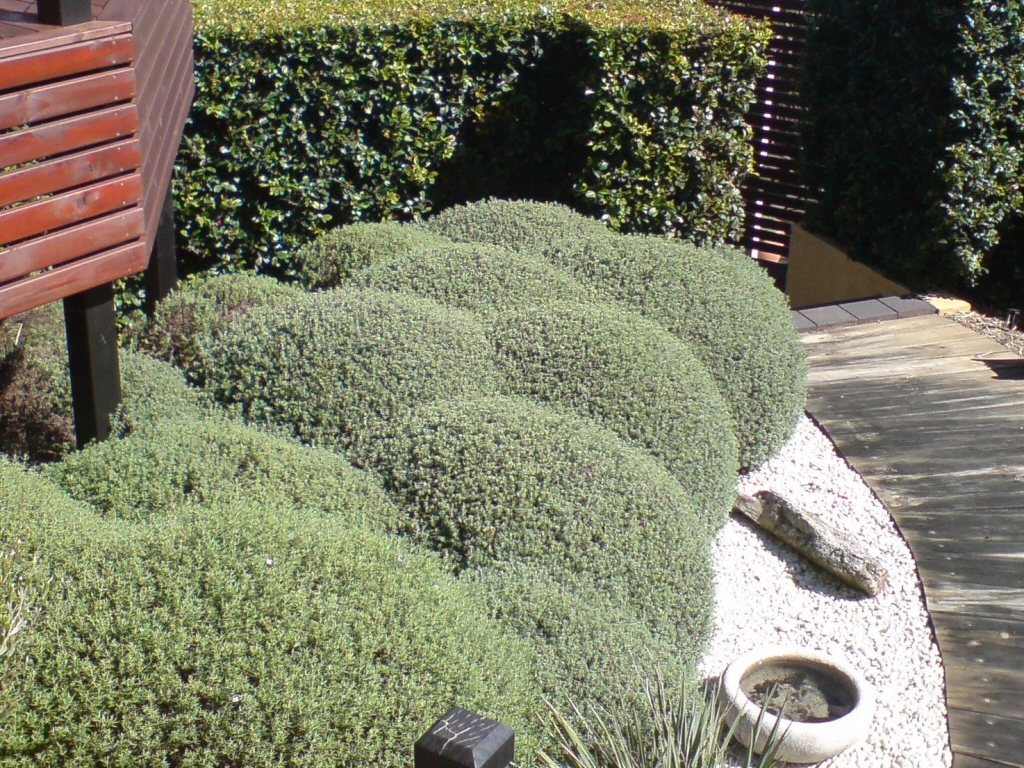 As well as the ‘bush garden’ style, most Australian gardens now feature at least some native plants such as grevilleas, but often their use is rather random and lacks any sense of design. Australian plants are sometimes used as part of other garden styles such as Japanese gardens where plants such as Westringia fruticosa adapt very happily to the closely clipped form that is required of plants in a Japanese garden.