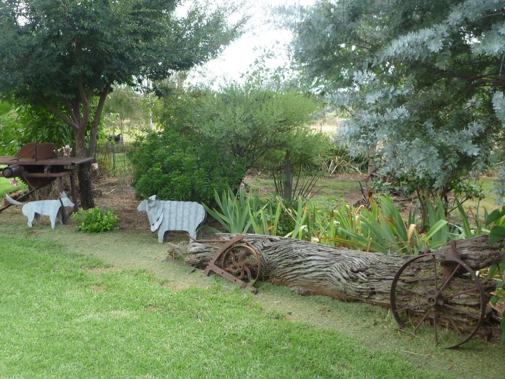 Distinctively Australian sculptures made from materials such as corrugated or rusty iron and often with a rustic theme feature in many bush gardens as well.