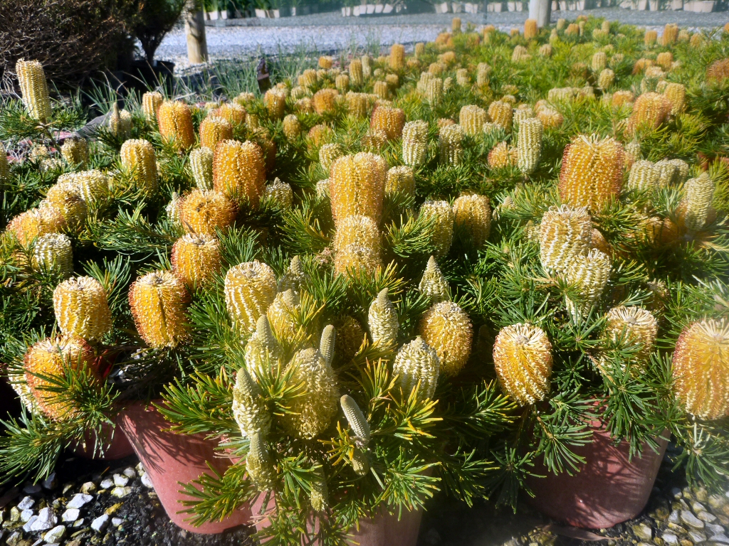 The development of better cultivars of Australian plants has also increased the palette of plants available to gardeners such that the shapes, textures, sizes and colours can match it with the traditional exotic plant offerings. The trend towards smaller gardens in suburban areas has led to the development of a fantastic array of dwarf native plants such as the many compact cultivars of hairpin banksia (B. spinulosa) and river wattle (Acacia cognata). The recent increase in interest in growing edible plants of all descriptions in modern gardens has led to a great increase in the availability of ‘bush food’ plants as well.