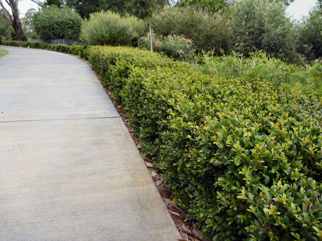Australia has some of the harshest conditions in the world. Native plants have developed adaptations to cope with heat, low nutrients and frequent fires that will make them into good hedging plants. Callistemons and lilly pillies, for example, have numerous dormant buds in their old wood. As long as the plant is healthy, these buds will spring to new growth if the plant is cut back hard. I’ve seen specimens that have been cut back to a stump and that have regrown into a shapely hedge- very handy if your hedge becomes neglected and you need to start again!